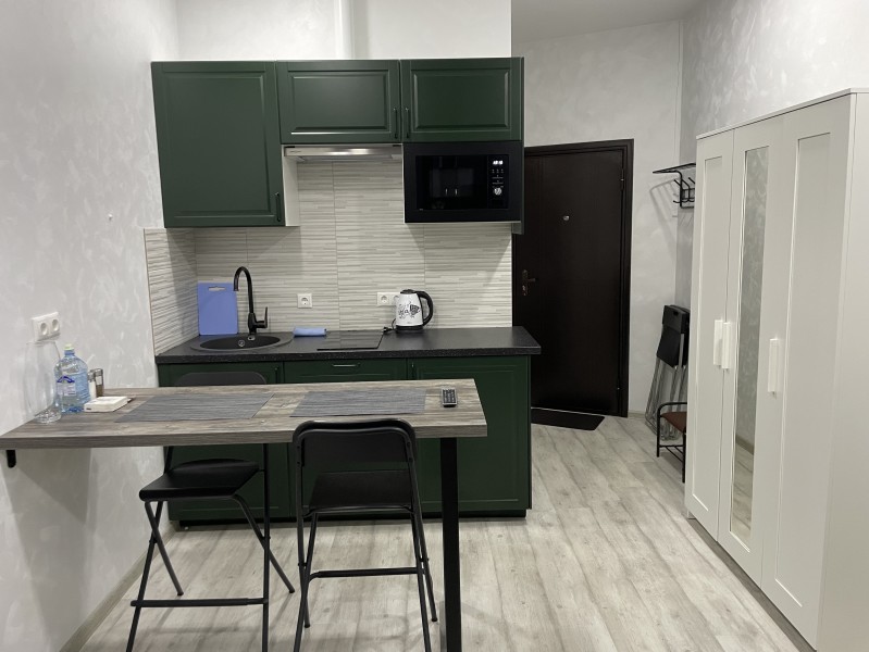 Для Вас мы приготовили уютную студию со всеми удобствами гостиничного номера. Подходит для 1 человека или пары. В наличии необходимая для проживания мебель, мини-кухня, крупная и мелкая бытовая техника, посуда, столовые приборы и постельные принадлежности. Закрытая территория комплекса бизнес-класса, без транспорта, с круглосуточной охраной. Имеется сетевой супермаркет, бутики товаров и услуг, кафе и рестораны. Никаких дополнительных коммунальных платежей и комиссий. А ещё предоставим Вам доступ в Интернет и IP-телевидение. Также у нас можно заказывать клининг и паркинг. При заселении выдадим ключи и карту доступа на территорию, при выезде выполним клининг без дополнительной оплаты. Доступ к фирменному мобильному приложению и сервисная поддержка 24/7.