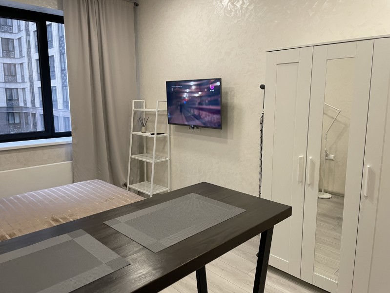 Для Вас мы приготовили уютную студию со всеми удобствами гостиничного номера. Подходит для 1 человека или пары. В наличии необходимая для проживания мебель, мини-кухня, крупная и мелкая бытовая техника, посуда, столовые приборы и постельные принадлежности. Никаких дополнительных коммунальных платежей и комиссий. А ещё предоставим Вам доступ в Интернет и IP-телевидение. Также у нас можно заказывать клининг. При заселении выдадим ключи и карту доступа на территорию, при выезде выполним клининг без дополнительной оплаты. Закрытая территория комплекса без транспорта, с круглосуточной охраной, десткой и спортивной площадками. В комплексе есть минимаркеты и кафе. Доступ к фирменному мобильному приложению и сервисная поддержка 24/7. Арендная плата принимается в наличной и безналичной форме.